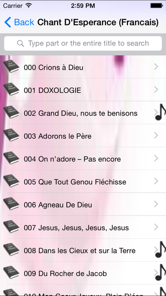 O aplicativo também possui recursos adicionais, como a opção de adicionar músicas aos favoritos, compartilhar letras via e-mail ou redes sociais e suporte para temas noturnos e diurnos. Com uma licença gratuita, Chants D'Esperance - Tunes é uma ferramenta prática para aqueles que desejam enriquecer sua experiência de adoração.